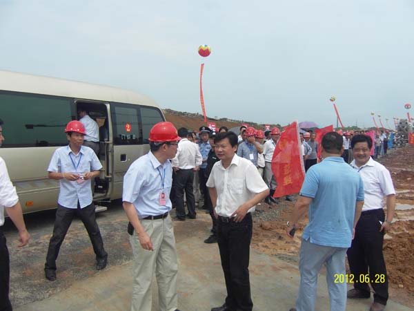 典禮現(xiàn)場彩旗飄揚(yáng),鑼鼓震天,人山人海,車隊(duì)排列整齊有序。10時(shí)28分,國家建設(shè)部、省政府、省建設(shè)廳領(lǐng)導(dǎo)和池州市相關(guān)領(lǐng)導(dǎo)出席了開工儀式。儀式現(xiàn)場,我公司董事長王文俊同志向省建設(shè)廳副廳長吳貴和、池州市市委書記陳強(qiáng)、市長趙馨群匯報(bào)了項(xiàng)目的工期、安全、質(zhì)量以及創(chuàng)省級安全質(zhì)量標(biāo)準(zhǔn)化示范工地等具體情況。