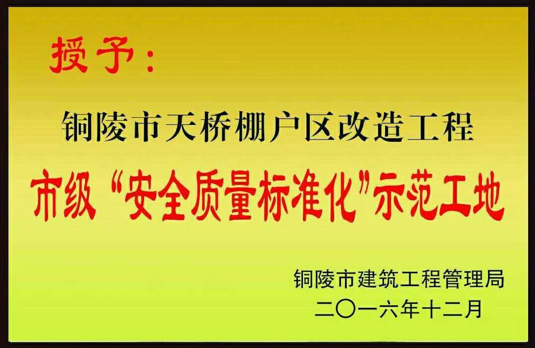 益建公司承建的麗景豪庭二期21#--28#樓、地下車庫工程和天橋棚戶區(qū)改造工程榮獲銅陵市2016年度“市級建筑施工安全質(zhì)量標(biāo)準(zhǔn)化示范工地”榮譽(yù)稱號。