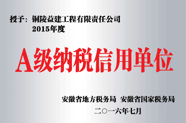 日前,省地稅局、省國稅局公布了2015年度A級納稅信用單位評定結(jié)果,我公司被評為2015年度“A級納稅信用單位”。榮獲A級納稅信用單位稱號是國家稅務(wù)機(jī)關(guān)對納稅人依法納稅、誠信納稅工作的高度肯定和認(rèn)可。